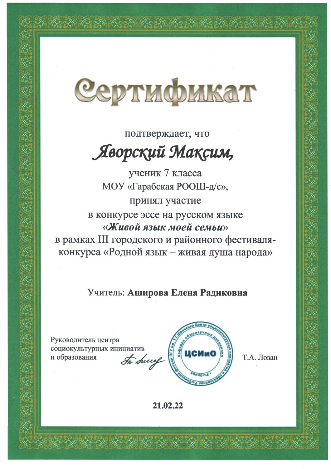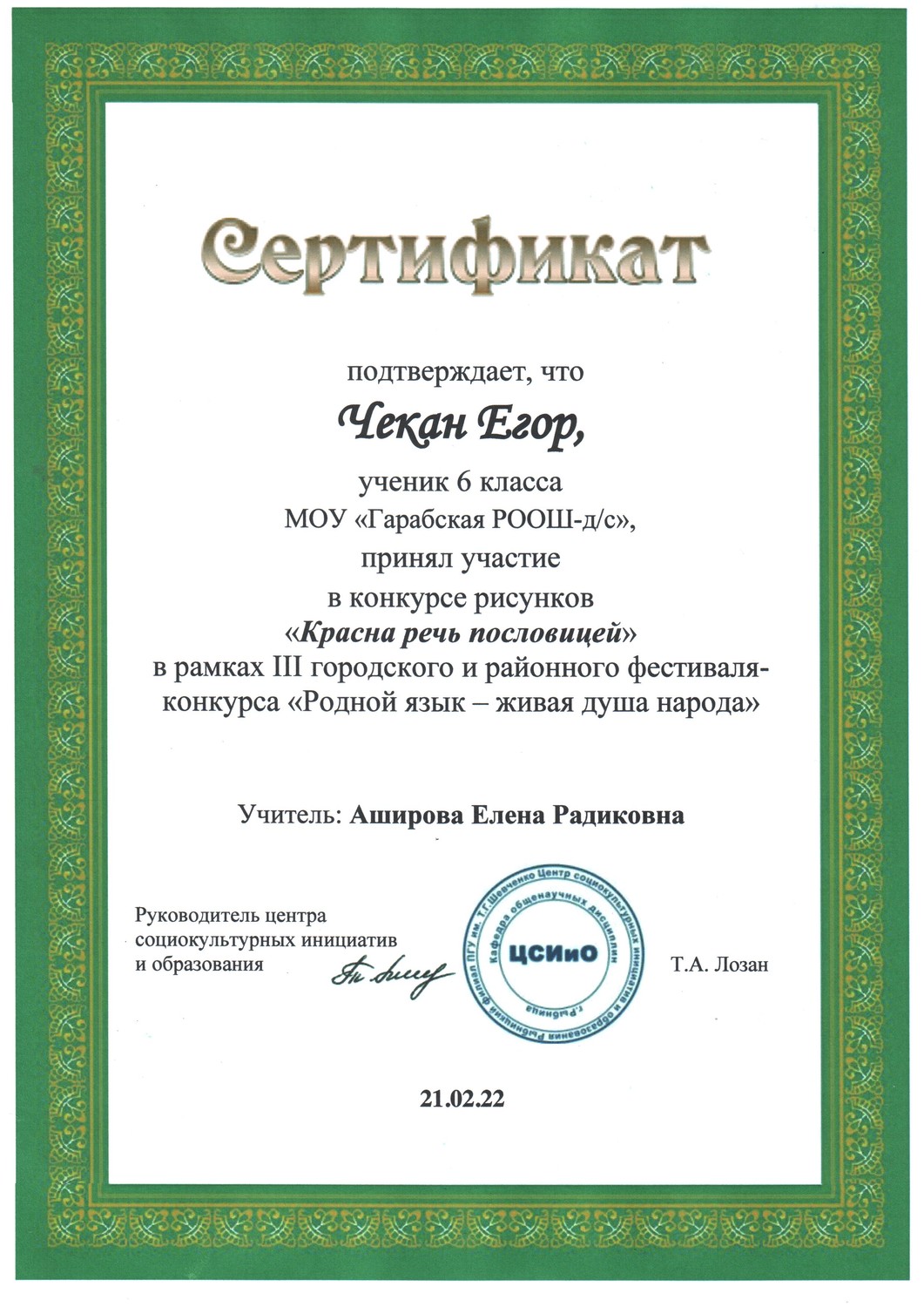 МОУ "Гарабская РООШ - детский сад"